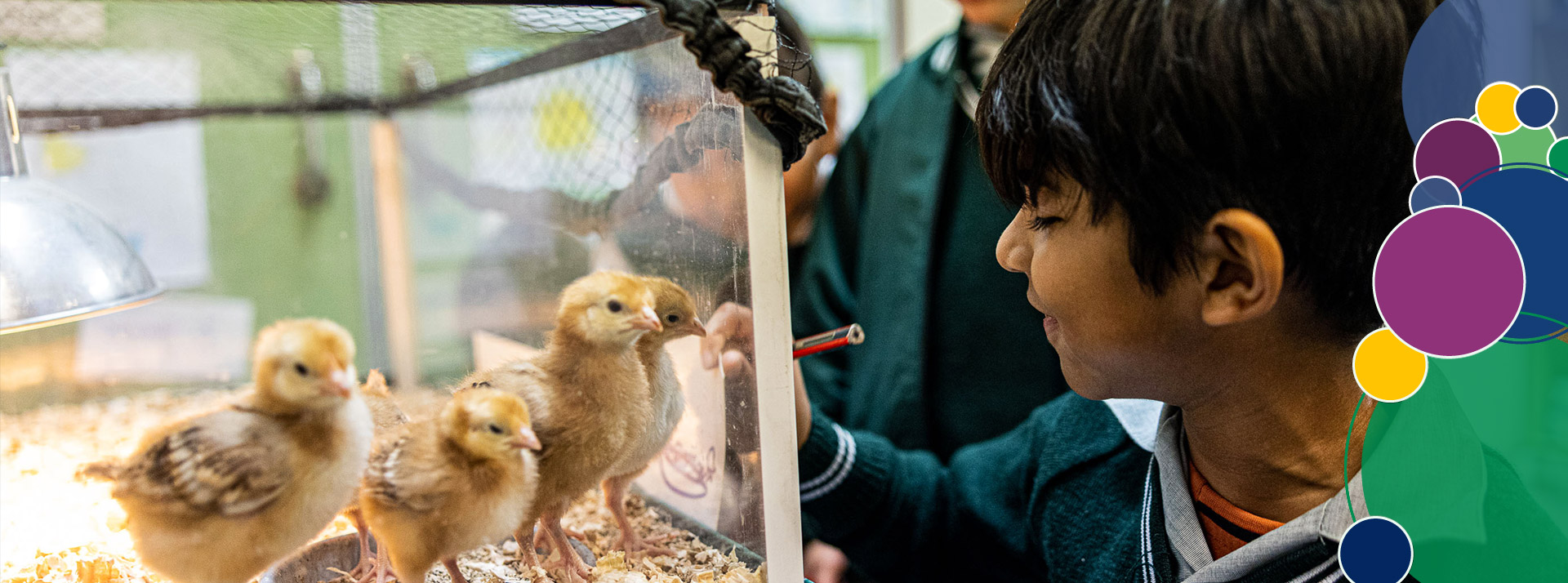 St Anthony's Catholic Primary School Girraween students looking at baby chicks